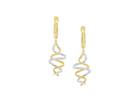 Gold Two Colour Spiral Drop Earrings 6966YW